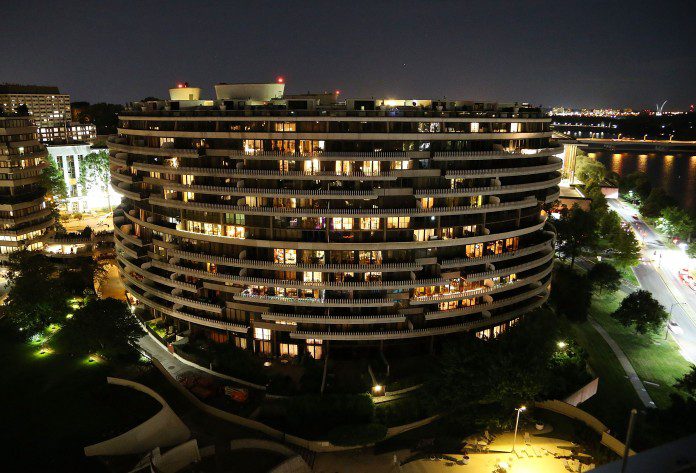 All in all, there are about 600 units in the Watergate’s three residential buildings, East, West and South. Among the famous residents other than those mentioned elsewhere have been Ruth Bader Ginsburg, Alan Greenspan, Russell Long, Clare Boothe Luce, Robert McNamara, Paul O’Neill, Condoleezza Rice, Mstislav Rostropovich, Ben Stein, Herbert Stein and John Warner and Elizabeth Taylor. And Monica Lewinsky’s mother, Marcia.