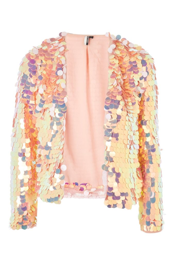 - Put some shimmer into your season’s wardrobe. TOPSHOP Circle Sequin Jacket $130