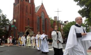 Afterward, the choir led the congregation down 31st Street to Tudor Place for a garden-party barbecue complete with jazz quartet.