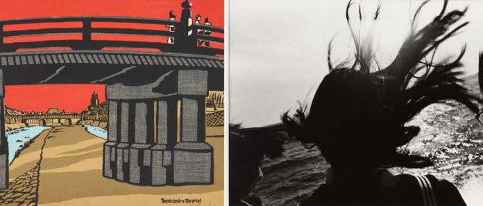 The first, “Prints in the Age of Photography,” examines the nearly overnight evolution of traditional Japanese woodblock printing in response to the introduction of photography from the West. Its larger sister exhibition, “Photography from the Gloria Katz and Willard Huyck Collection,” features works by groundbreaking 20th-century Japanese photographers, focusing on each artist’s search for a sense of place in a rapidly changing country.