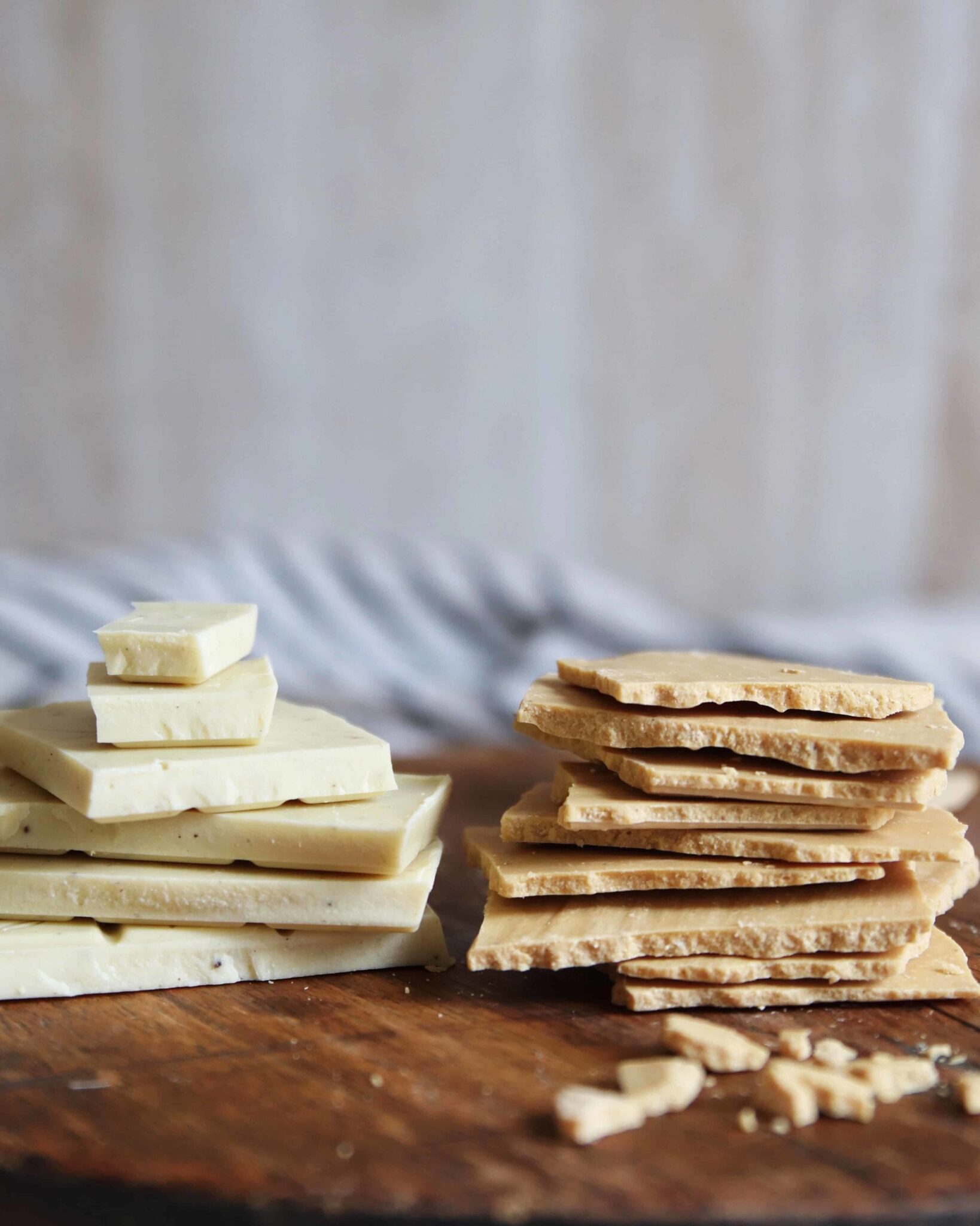 To make this caramelized white chocolate, all you need are a few bars of really good white chocolate, plus a baking sheet and some time in the oven. It is a very hands-off recipe — you will just give it a stir every once in a while. Then, right before your eyes, it will transform.