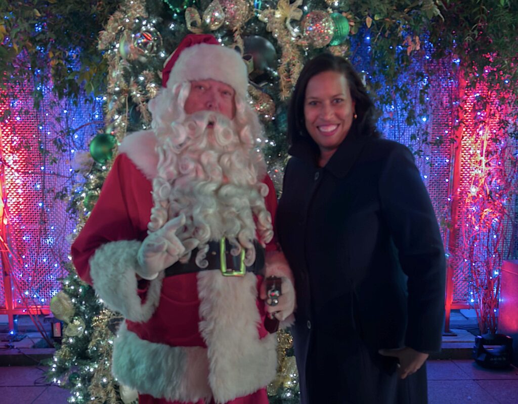 Santa Claus and Mayor Muriel Bowser at the Fairmont Christmas tree lighting ceremony.
