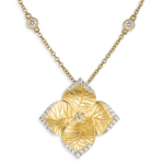- PIRANESI. 18K Gold Diamond Flower Pendant Necklace. $3,648. Bloomingdale’s. 18K Yellow Gold Oro Fiore Diamond Large Flower Pendant Necklace, 16-18” | Piranesi | Bloomingdales