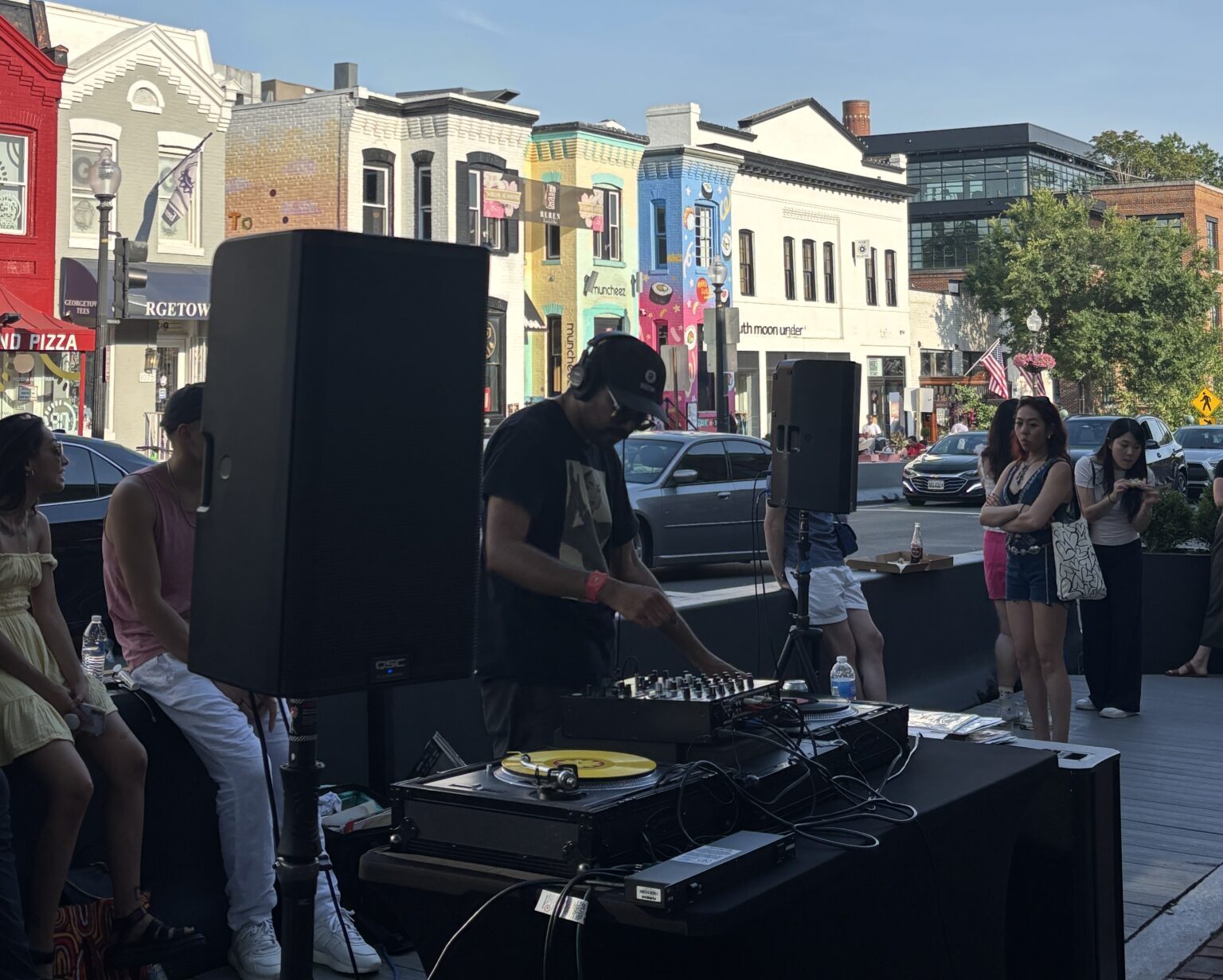 - DJ Corazon at the intersection of M Street and Wisconsin Avenue playing a set of international grooves