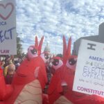 Still, you knew the rally — filled with signs, funny and vulgar, along with different species of inflatable animals or fictional creatures — was off an interesting start when you saw some guy walking down Wisconsin Avenue dressed in a golden suit, with a blond wig and orange make-up … a faux king POTUS.