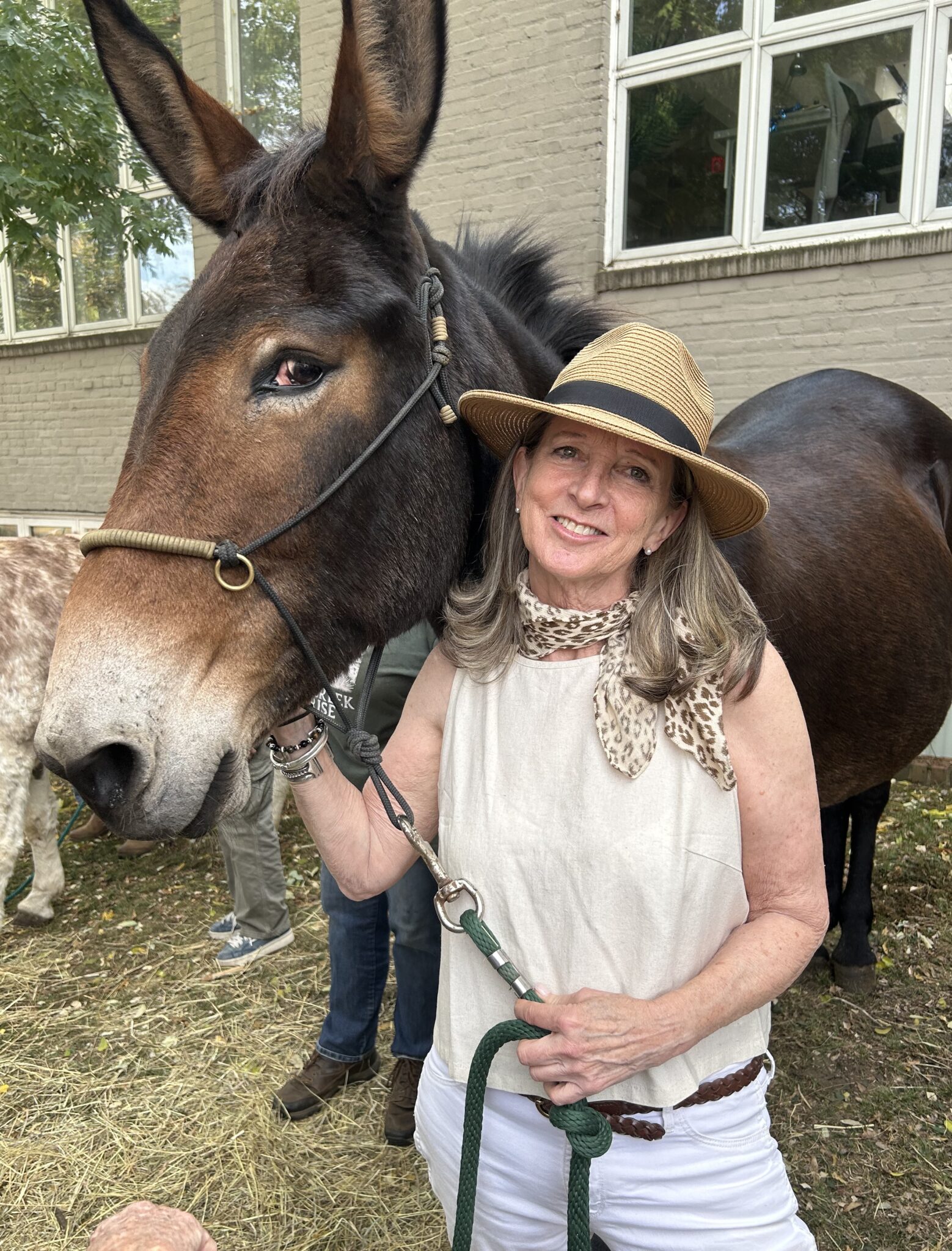 Constance Chatfield-Taylor with mule Kismet at Canal Day Oct. 19. Photo by Robert Devaney.