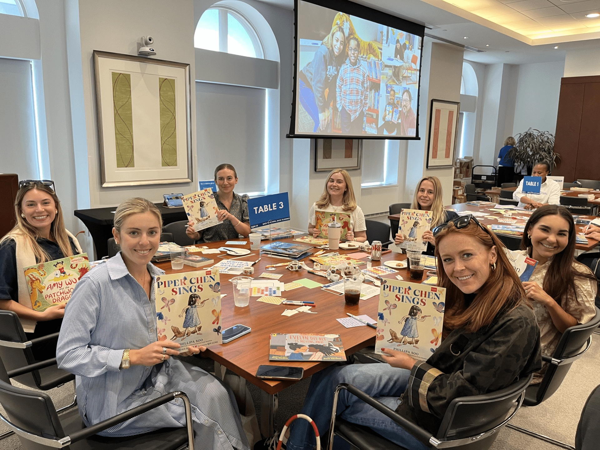 Tuckernuck employees process books at a Back to School, Back to Books event in September, kicking off the 2025-26 school year.