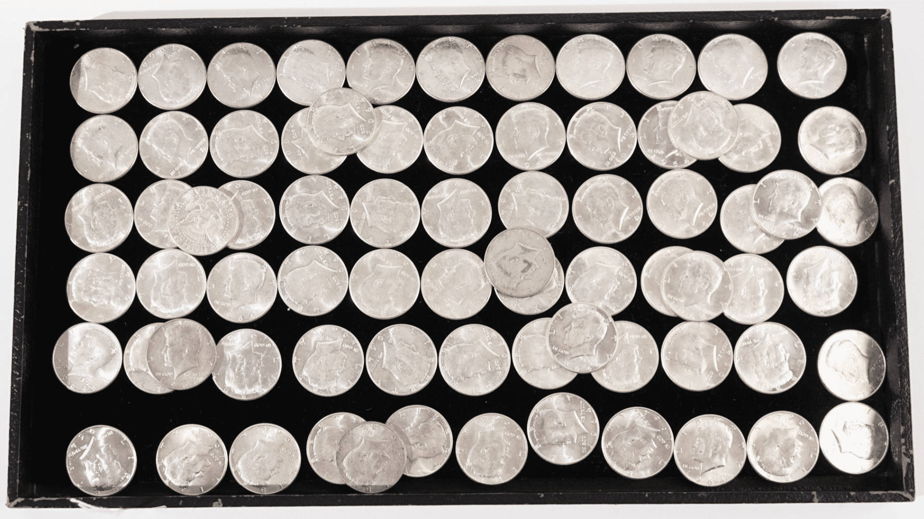 Collection of Seventy-Two U.S. Kennedy 1964 Silver Half-Dollars and Three Silver-Clad Half Dollars