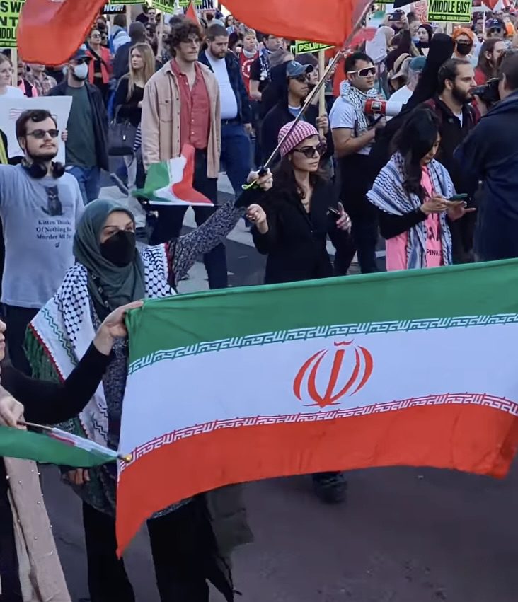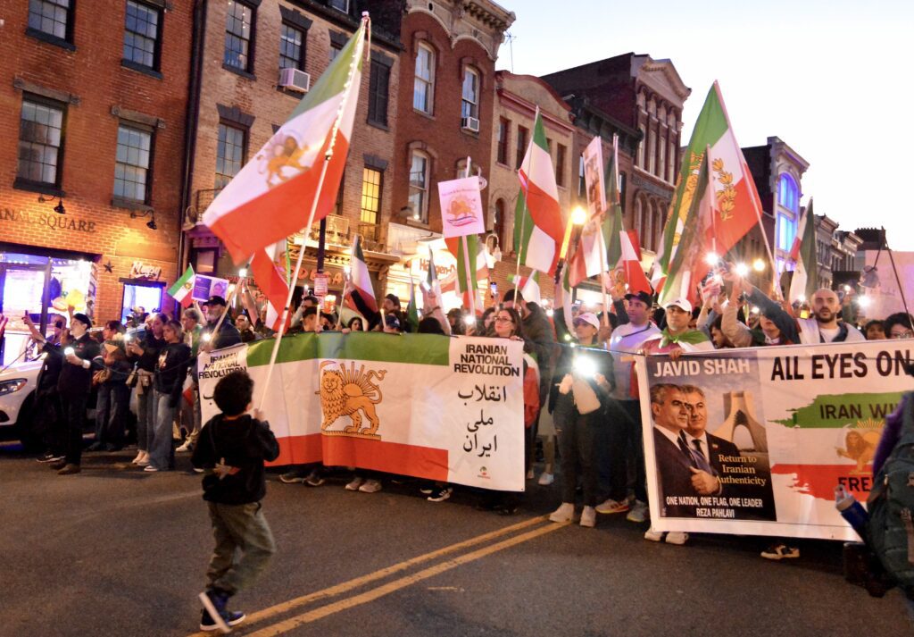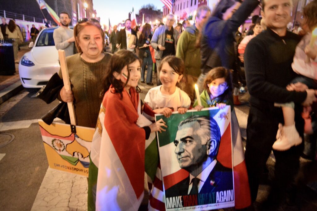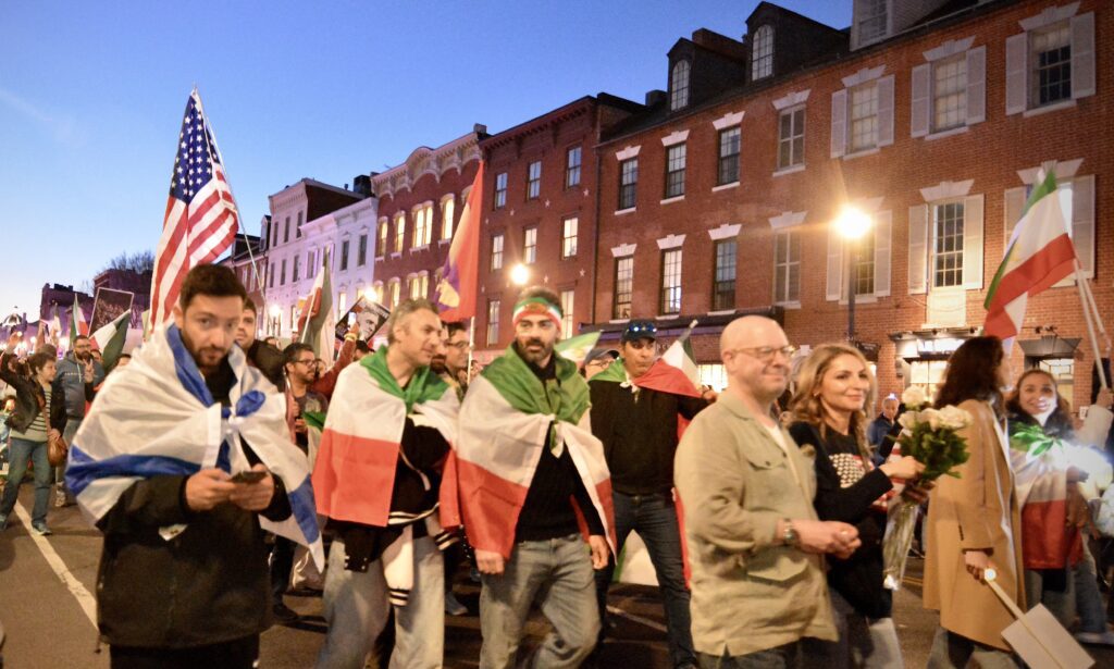 By-standers in Georgetown on Saturday observed a joyous crowd waving American, Israeli and pre-revolutionary Iranian flags.